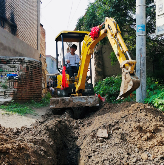 当小编们来到小丁的工地后,发现小丁这台“变形小金钢”正在给村民们挖自来水管道。只见它辗转腾挪,机动小巧,简单略施了几下拳脚,没多大会工夫,几十米的管道在便呈现在了狭小的街道里。周围村民对“她”的表现赞不绝口--“幸亏有这台挖掘机来帮忙,要不然今年的自来水又吃不上喽“。