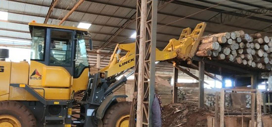 其次,走访木材初级加工厂个体老板Guilherme,初见球友会走访团队,便滔滔不绝:近两年生意取得了较快的发展,购买L936,工作2000多小时,除保养没有任何维修,木材卸车、转运、向旋切机上送木材,旋出的木皮转运到晾晒场,及最后干木皮转运入库,一天8h,全靠它,L936真好!