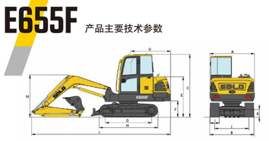 E655F的采用了紧凑型的车身设计,上车体宽度仅为1870mm,尾部回转半径只有1670mm,能够适应绝大多数的狭小工作场地,避免机体受到障碍物的磕碰和干扰。