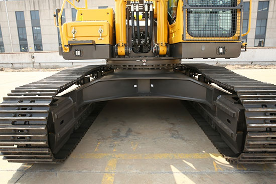 E6500F拥有同行业行业同吨位设备大长度底盘、大直径驱动轮、大厚度履带板、大强度引导轮,无一不延长了挖掘机的使用寿命。此外,重型链轨护板还可防止设备在坑洼路面翻车,保护支重轮和链轨节,大大提高整机稳定性。