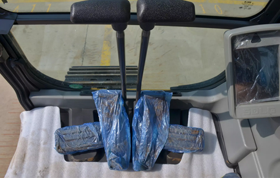 采用双速行走马达,按下翘板开关上的行走高速档后,行进中的挖掘机在路面阻力较大的情况下,自动切换为低速档,以增大驱动力,适应路况变化。