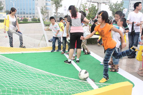 更令人惊喜的是:来自球友会中超系列观球活动的大篷车表演也“意外”的来到这次家庭日活动现场,动感的DJ舞台,漂亮的足球宝贝热舞,激情的女子电声乐团合奏、趣味十足的寻宝游戏让现场成为活动的最大焦点。舞台外面,背靠背夹球跑、“两人三足“折返跑、桌上足球、定点射门等游戏区都排起了长龙,家长与孩子其乐融融,获胜后的礼品奖励更是锦上添花,让更多家庭踊跃参与每一类竞技游戏,广场也变成了孩子们欢笑的天堂。