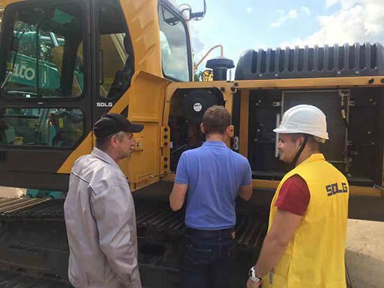 俄罗斯站选拔赛比赛内容更注重服务实战性,莫斯科区域选拔赛现场,考官首先对俄罗斯主力销售机型E6210F挖掘机设定了几项故障,参赛的服务精英,在限时的考试时间里,通过经验和借助工具、仪器,以听、看、闻、试、摸、测、问等方法检查故障所在,围绕挖掘机的故障排除,从发动机故障排除、液压系统故障排除、电器故障排除等各个方面进行全方位的检测、维修,参赛选手灵活的运用检测维修工具,在有限时间内展示精湛的技艺,与此同时,也展现出了山东球友会俄罗斯服务人员高超的专业知识水平和实际操作技能。