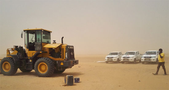 山东球友会北非区域的销售及服务团队在沙漠矿区内开展市场走访活动,走访人员在走访阿伯哈莫德市区附近的矿区时,遭遇2018年以来最严重的沙尘暴,能见度不足100米,恶劣的天气挡住了进矿的道路。
