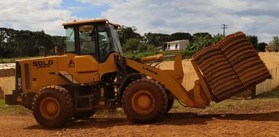 其次,走访木材初级加工厂个体老板Guilherme,初见球友会走访团队,便滔滔不绝:近两年生意取得了较快的发展,购买L936,工作2000多小时,除保养没有任何维修,木材卸车、转运、向旋切机上送木材,旋出的木皮转运到晾晒场,及最后干木皮转运入库,一天8h,全靠它,L936真好!